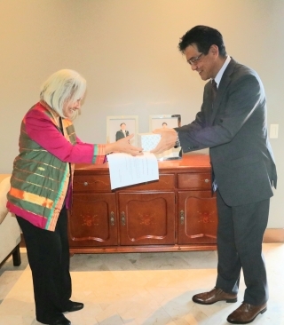 9月14日、マリア・ロザリオ・ピケロ・バレスカス・フィラジェームス・セブ会長への令和4年度外務大臣表彰式が総領事公邸にて開催され、山地総領事から表彰状が手渡されました。